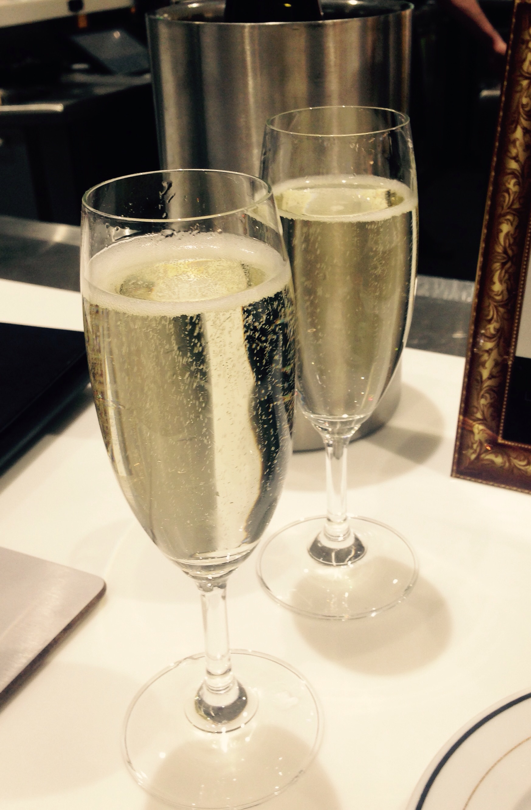 Just having a glass of ‘bellenda’ prosecco at the bar whilst waiting for our flight.