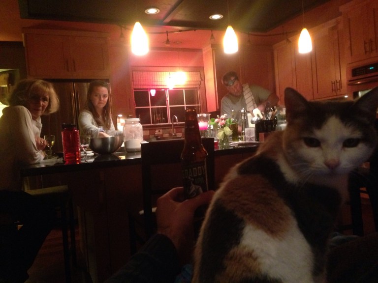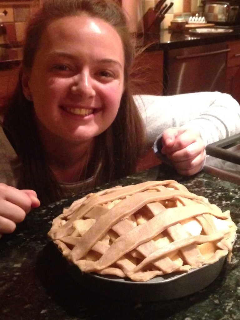 We are currently sitting by the fire, Brodie is helping me write the blog, Granny is knitting, Sue is on the wine, Tom is making Baba Ghanoush, which he says is the ‘shiznit’ and Evie is making an apple pie with apples from the cider mill.