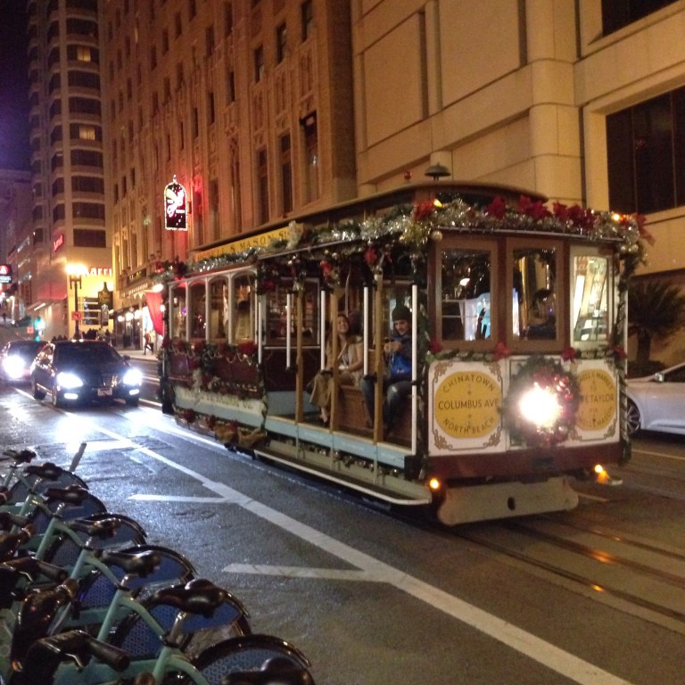 At about 5pm we took the bikes back and hopped on a tram back to Union Square to see the big Christmas tree all lit up. We really are having our christmas here, lots of festive songs and even the the tram was decorated. We had a great ride back to our street and went back to the hotel to freshen up!