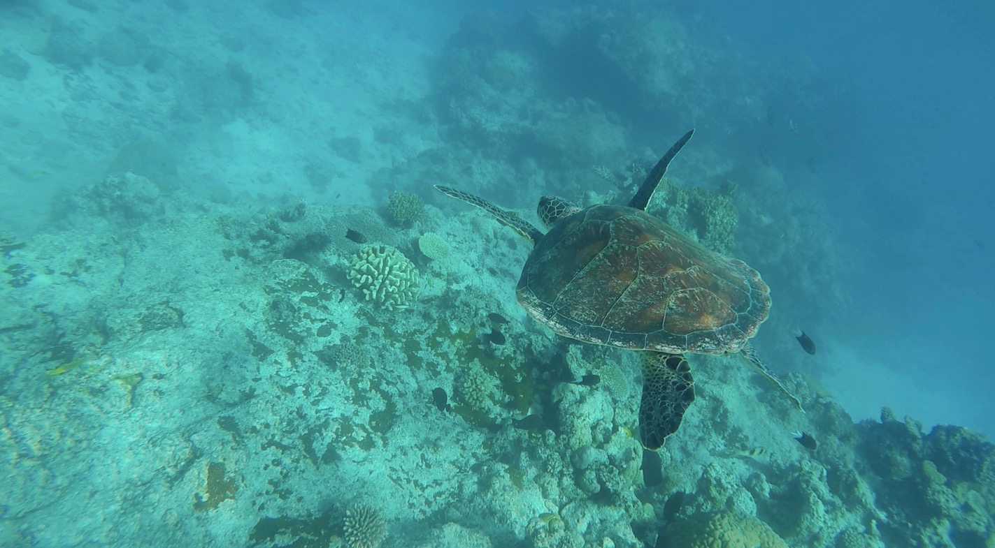 As we only had the one snorkel, I let Ryan have it and got out to dry off in the sun. I asked one of the men where the turtles would be and pointed Ryan in their direction. After drying off I stood on the balcony overlooking the shallow water and watched Ryan snorkelling in his orange pants, I mean it wasn’t difficult to point him out. Most of the people were snorkelling in the shallows and he had gone a bit further out as the turtles tend to hang out on the edge of the coral towards the deeper parts. He gave me the thumbs up, so I presumed he had been lucky enough to see one which was awesome. After a while he came back in and I delivered a towel to him at the bottom of the steps so he didn’t have to walk up in his pants.